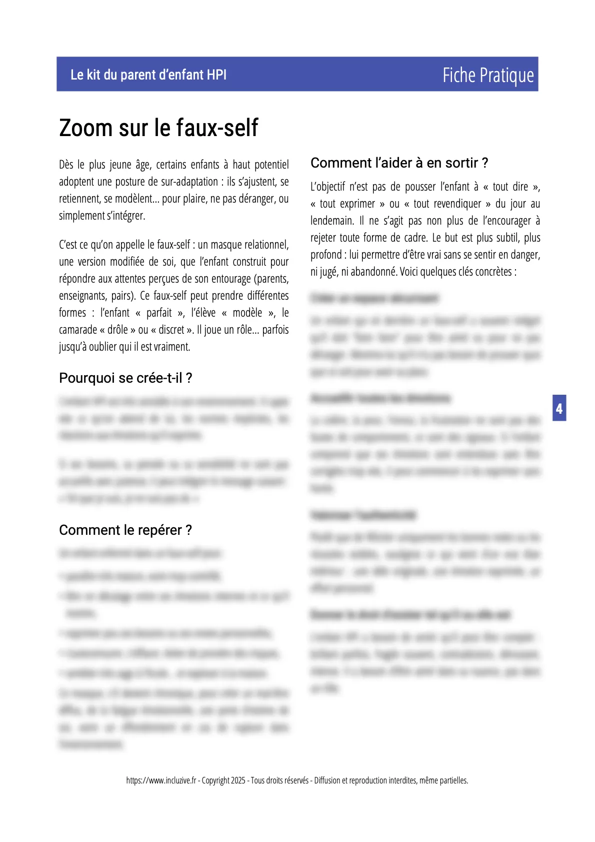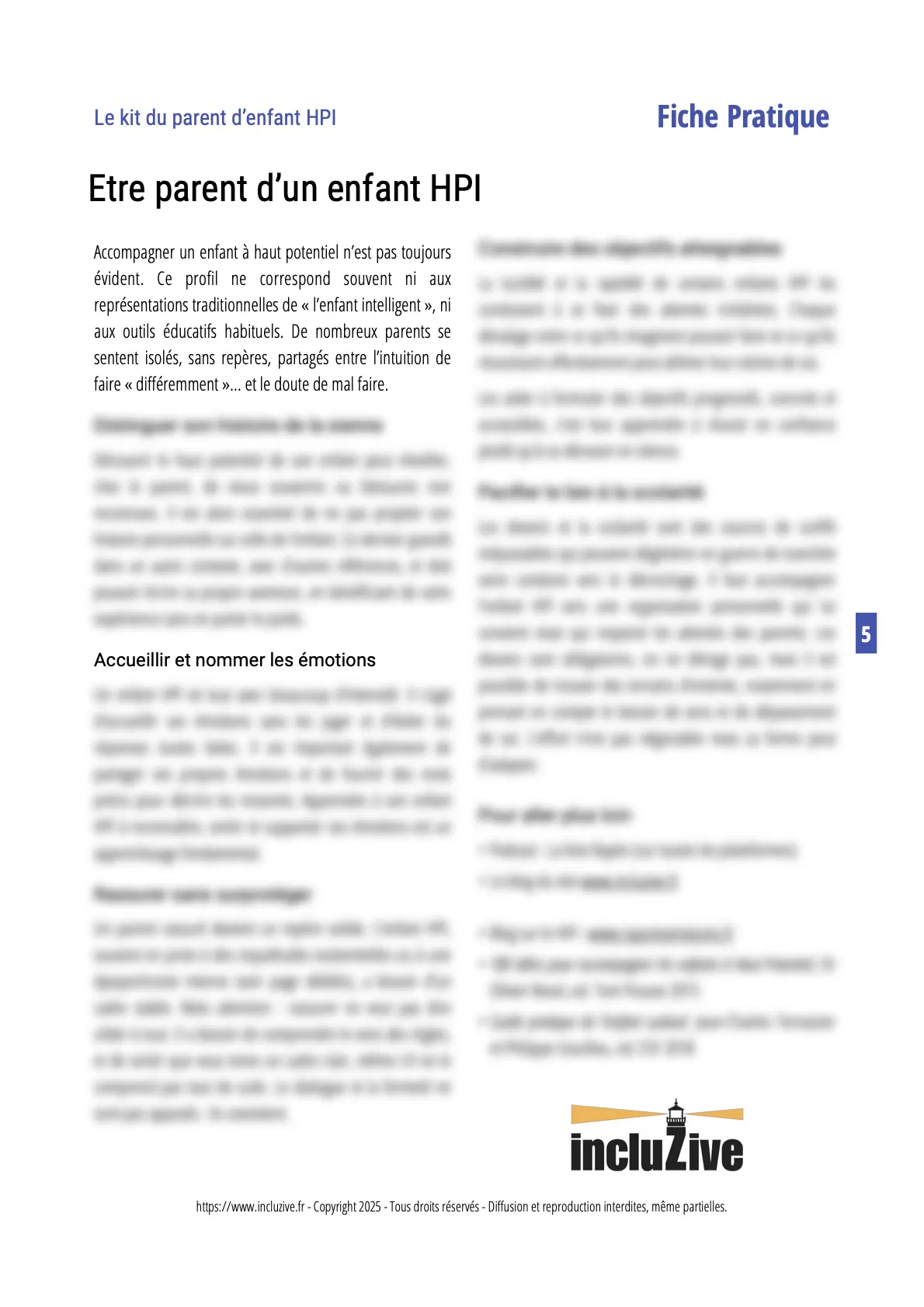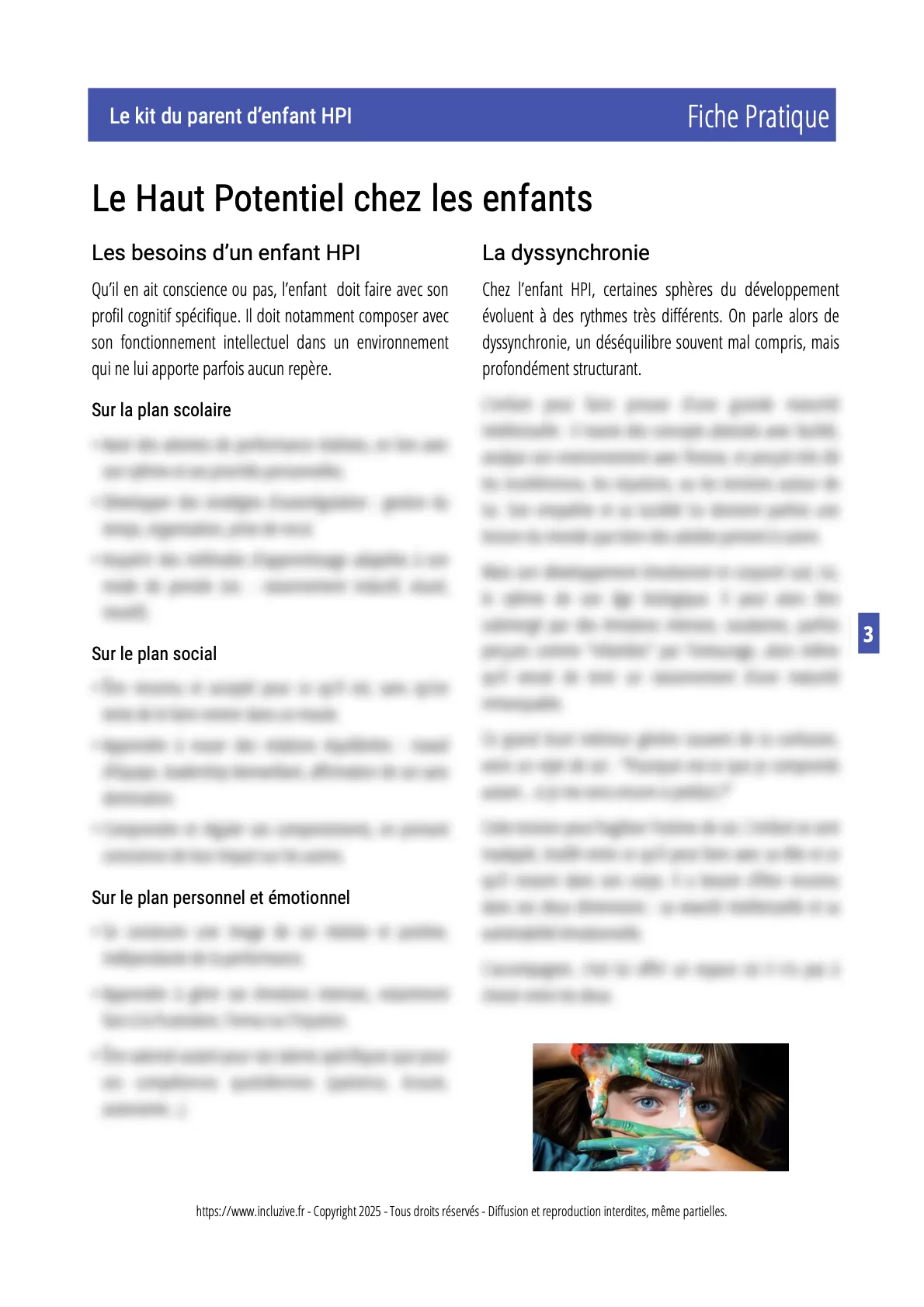 • des informations claires et accessibles sur le fonctionnement HPI chez l’enfant,